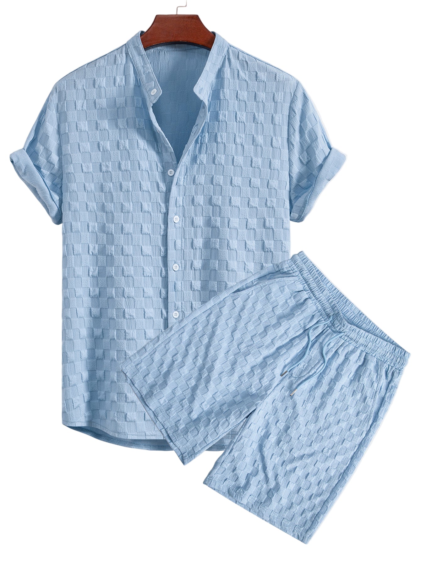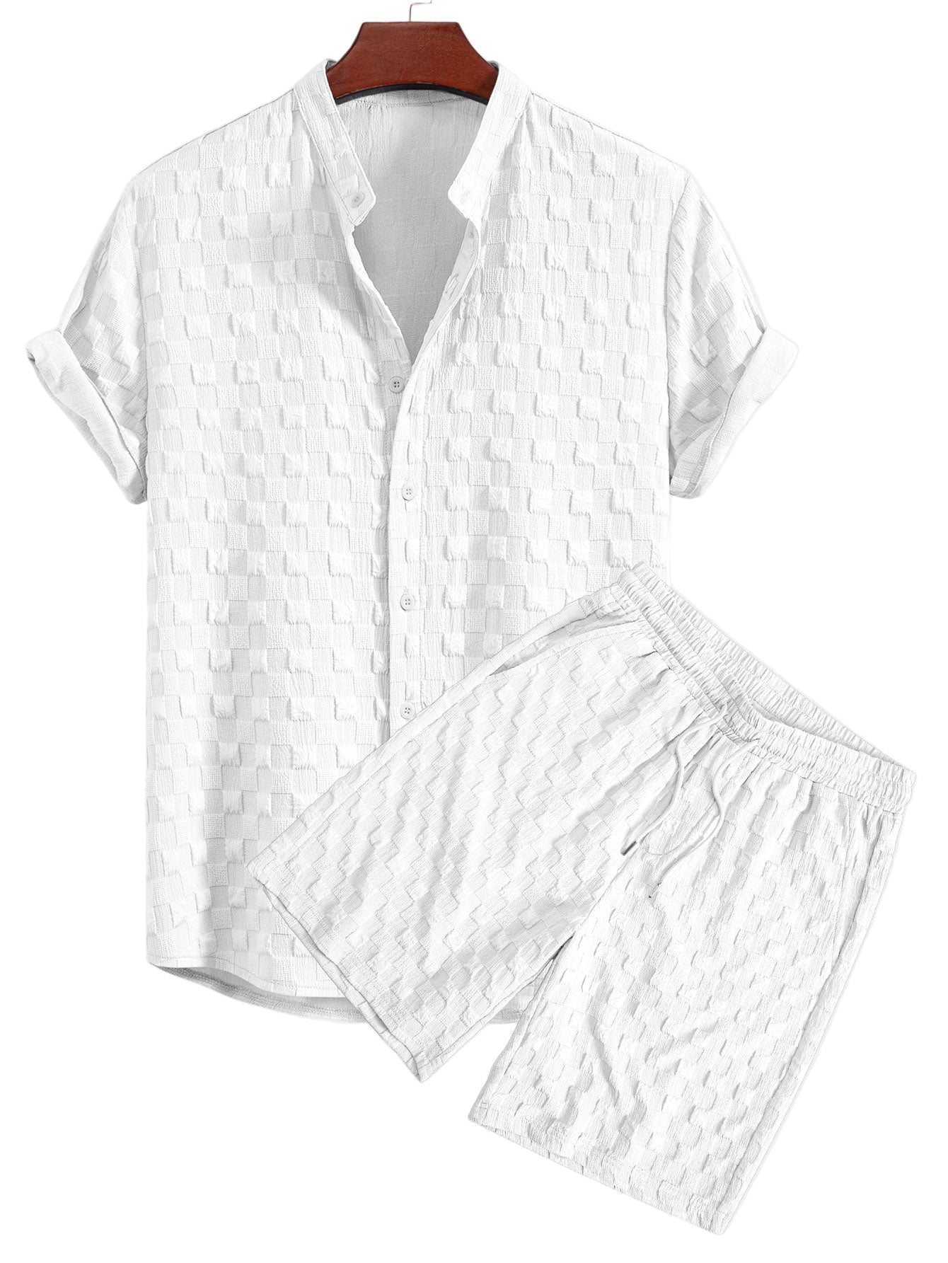Checkerboard Jacquard Stand Collar Shirt & Checkerboard Jacquard Shorts