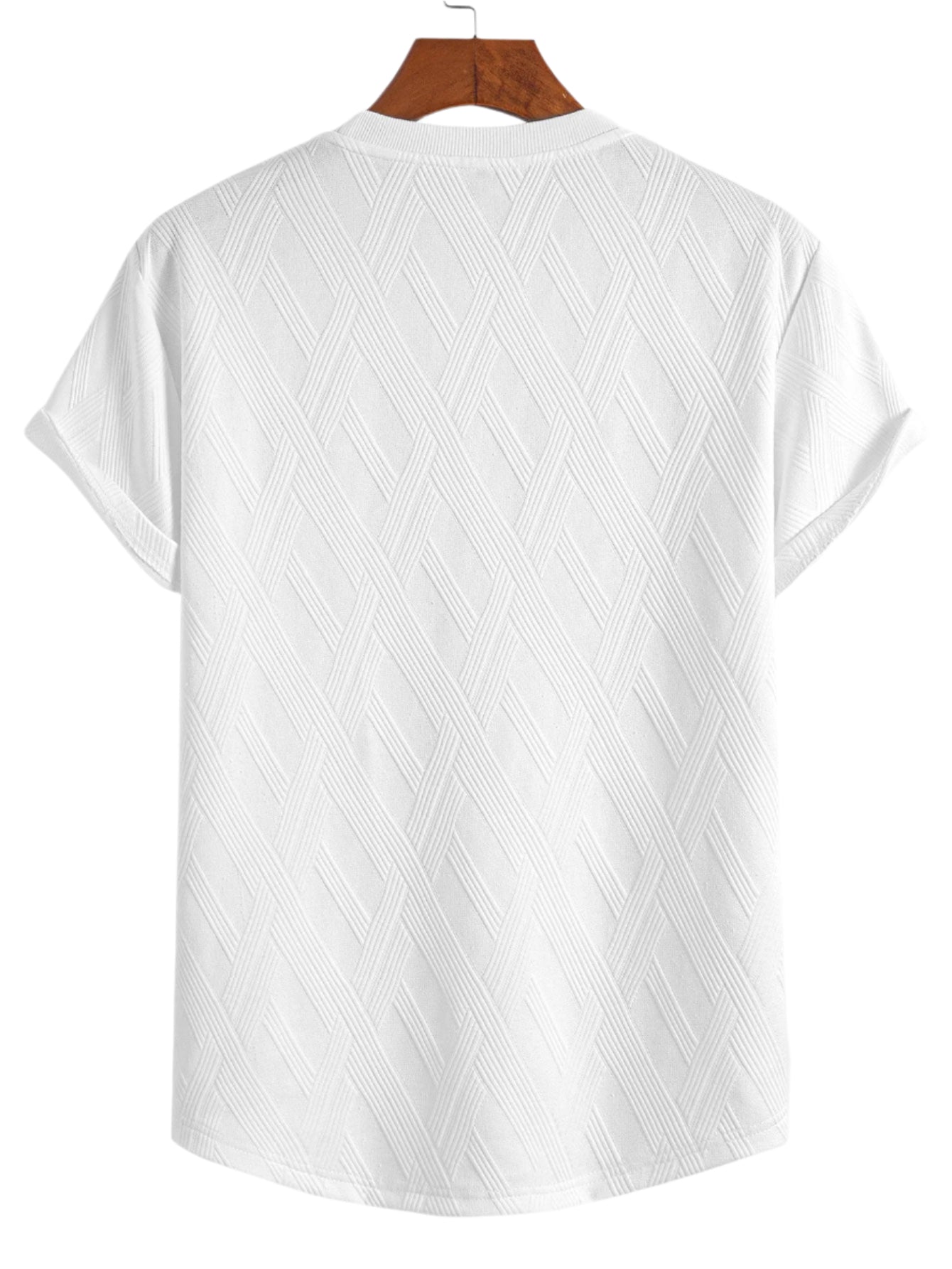 Upgrade your casual wardrobe with this diamond jacquard T-shirt and shorts set, designed for a perfect blend of comfort, style, and modern texture. Featuring a unique diamond jacquard pattern, this set offers a sleek, sophisticated look while maintaining a relaxed fit for everyday wear.